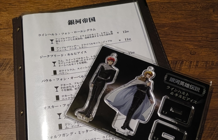 そして、これを読んでいる方はご存じかもしれませんが、私『銀河英雄伝説』のファンでして、大変光栄なことにキャラクターをイメージした創作カクテルや公式グッズの販売を公式さんから認めていただいております。