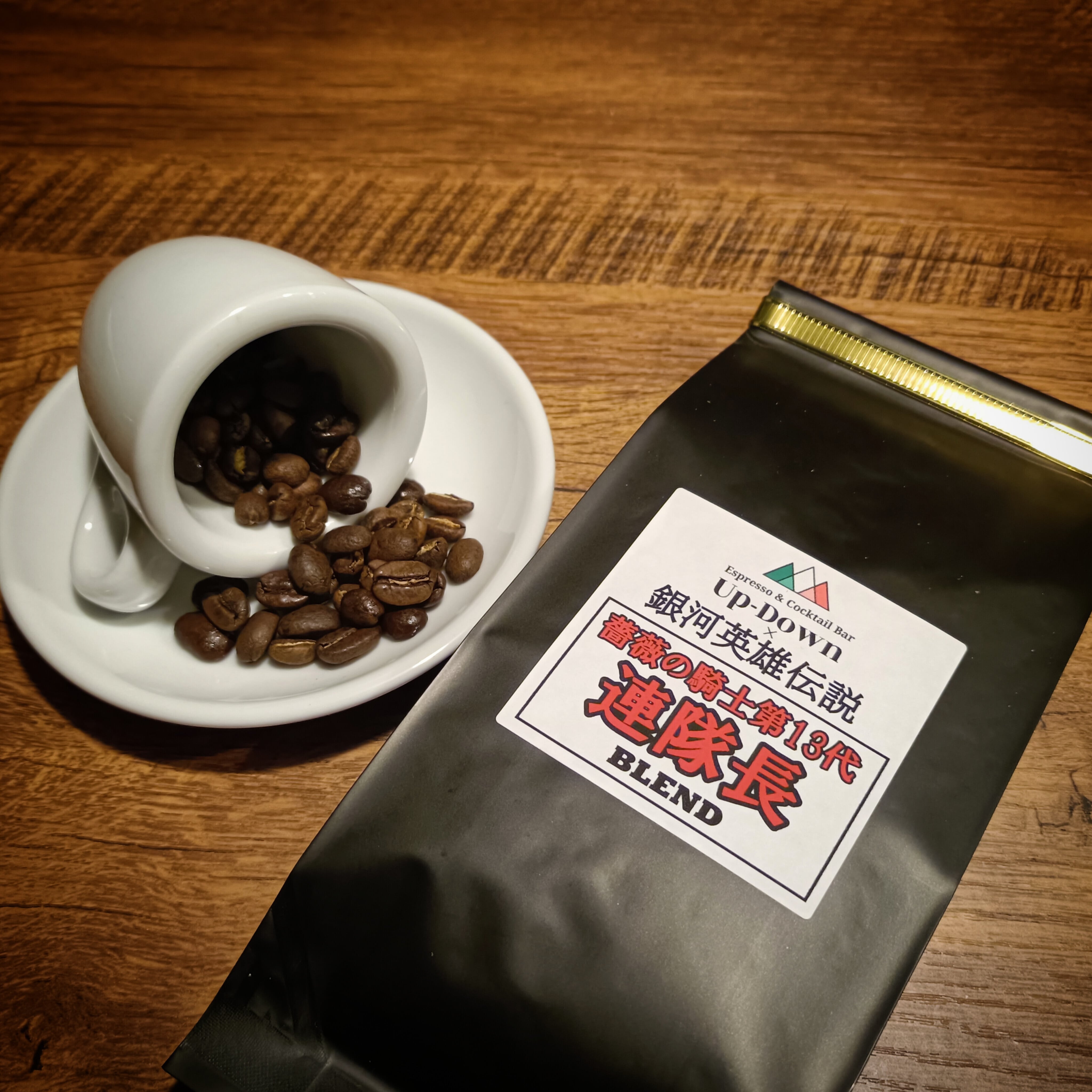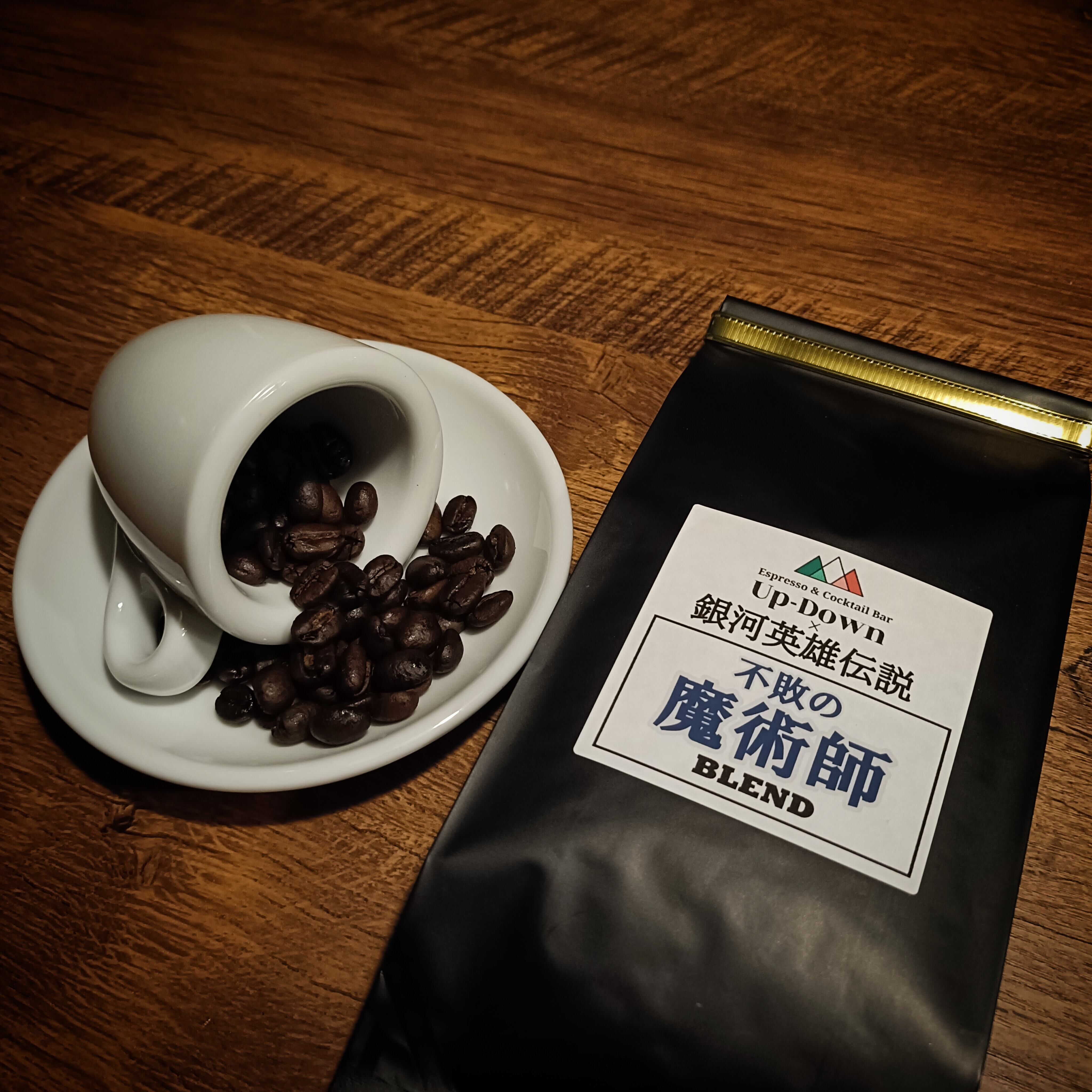 ■ヤンをイメージした『不敗の魔術師ブレンド』は深煎りで苦味とボディが強め。泥水のようなコーヒーが嫌いな方は紅茶を買ってきてください!